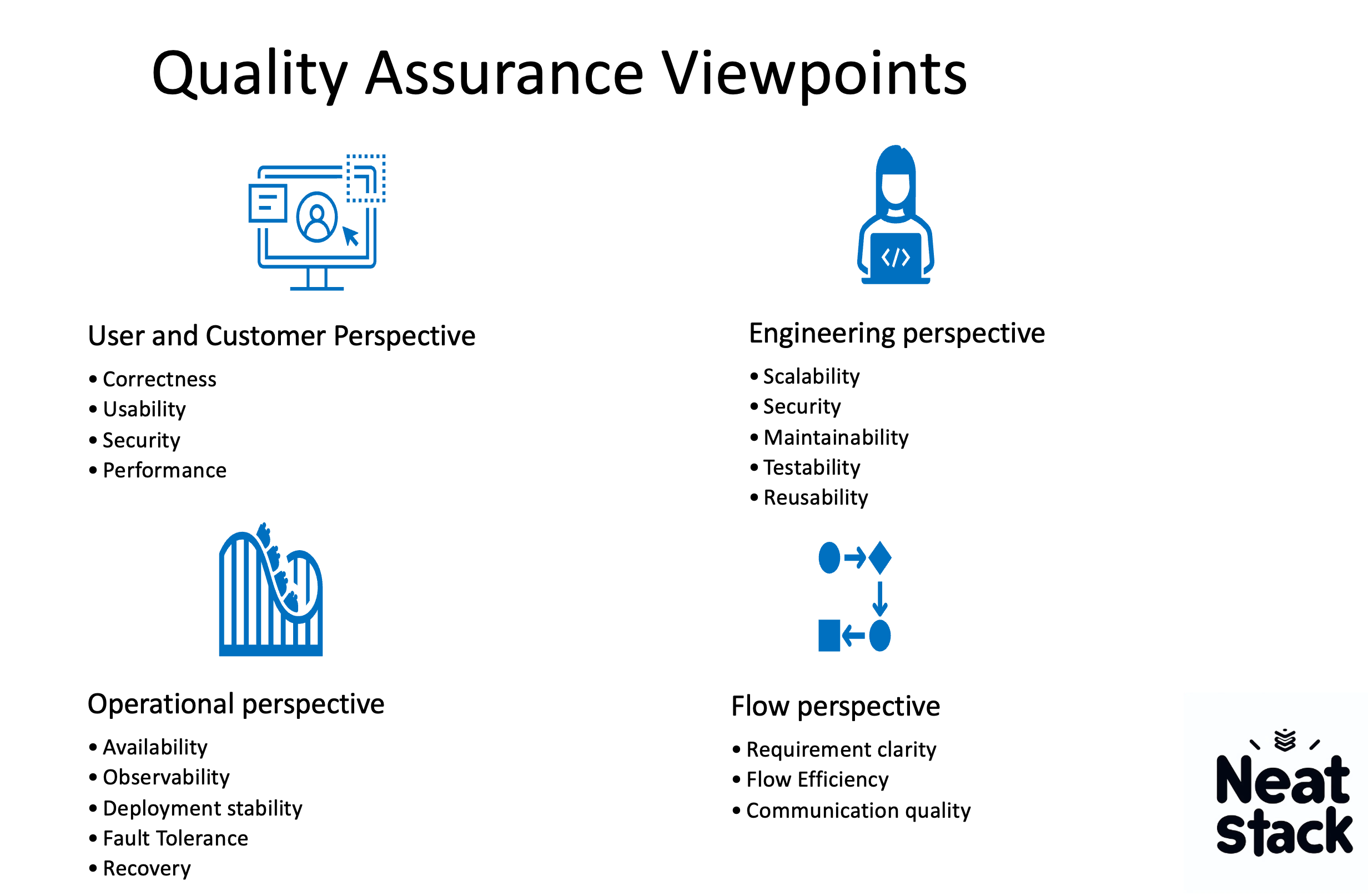 Here, I explain some key characteristics of these four viewpoints on Quality Assurance to build and sustain software products.